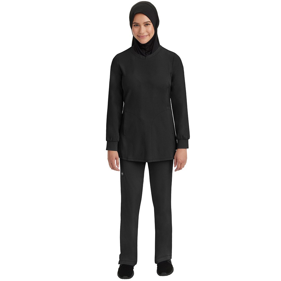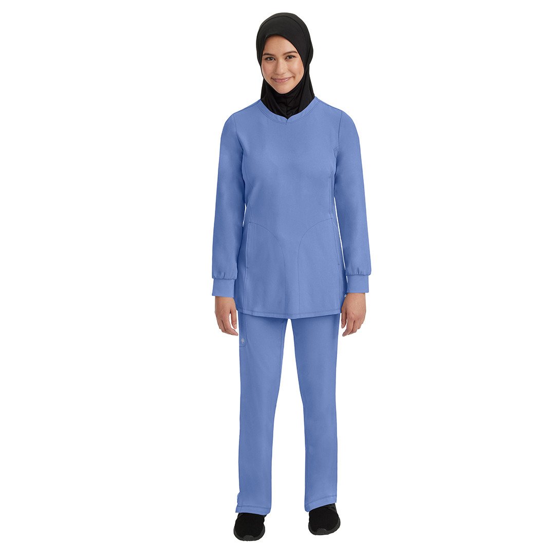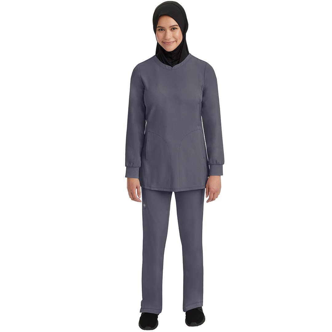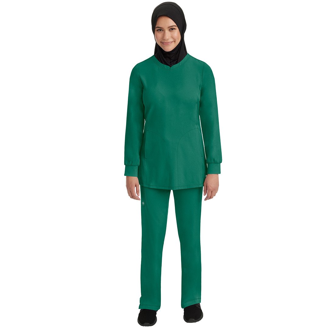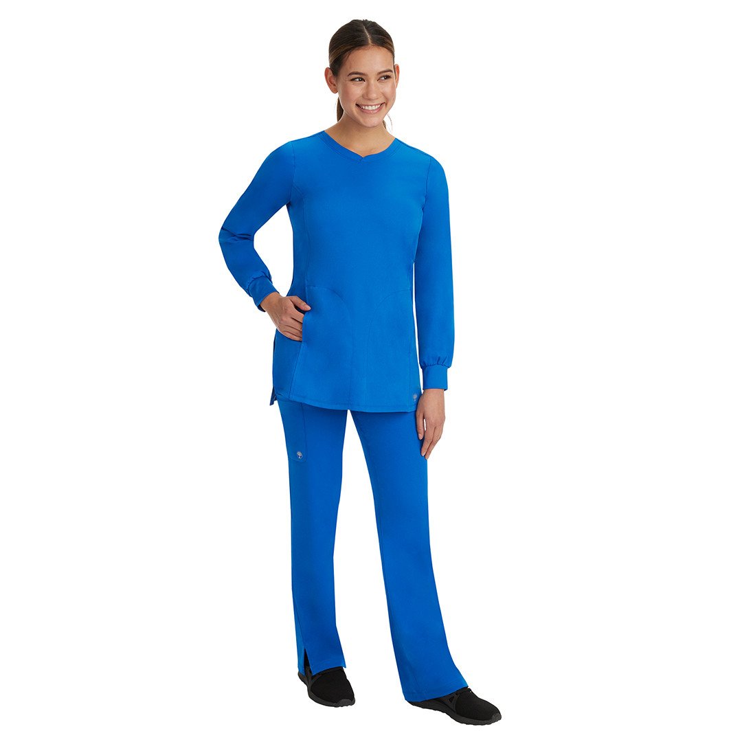 • Get full coverage with the tunic-length HH Works by Healing Hands Women's Fatima Solid Scrub Top.